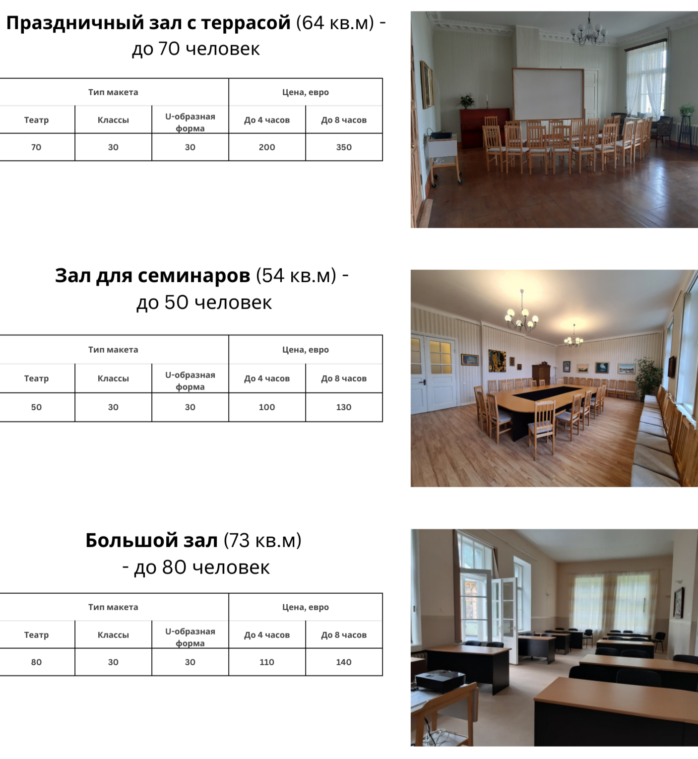 Для семинаров и конференций мы предлагаем следующие помещения: